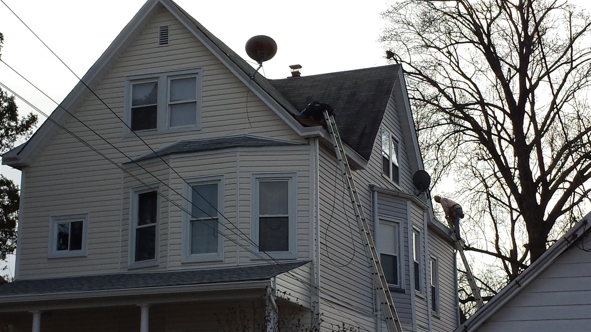 The roof on this home in Clifton, New Jersey had yankee gutters. M&M Construction Specialist covered the yankee gutter system with plywood, ice and water shield, and GAF shingles. After that was completed, new 5″ seamless aluminum gutters were installed along the edge of the roof.