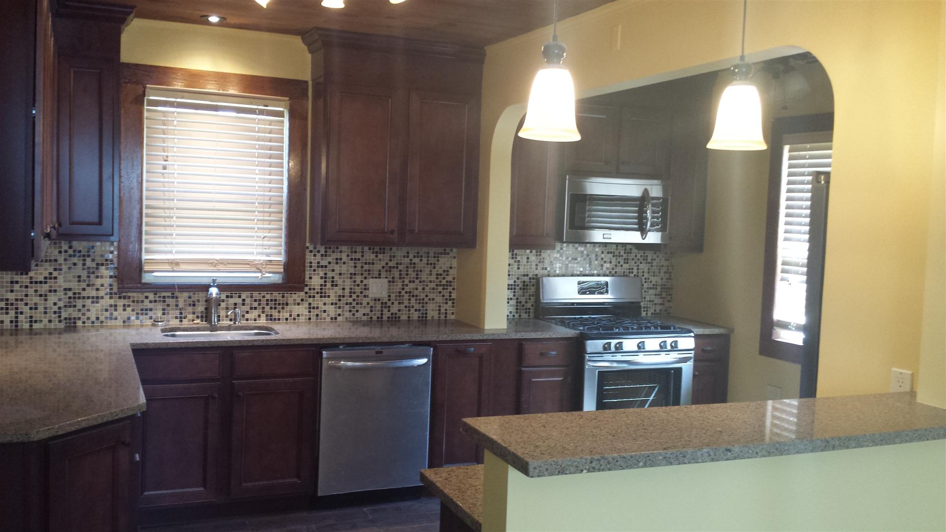 The completed kitchen and opening between the kitchen and dining room in Hasbrouck Heights, NJ.