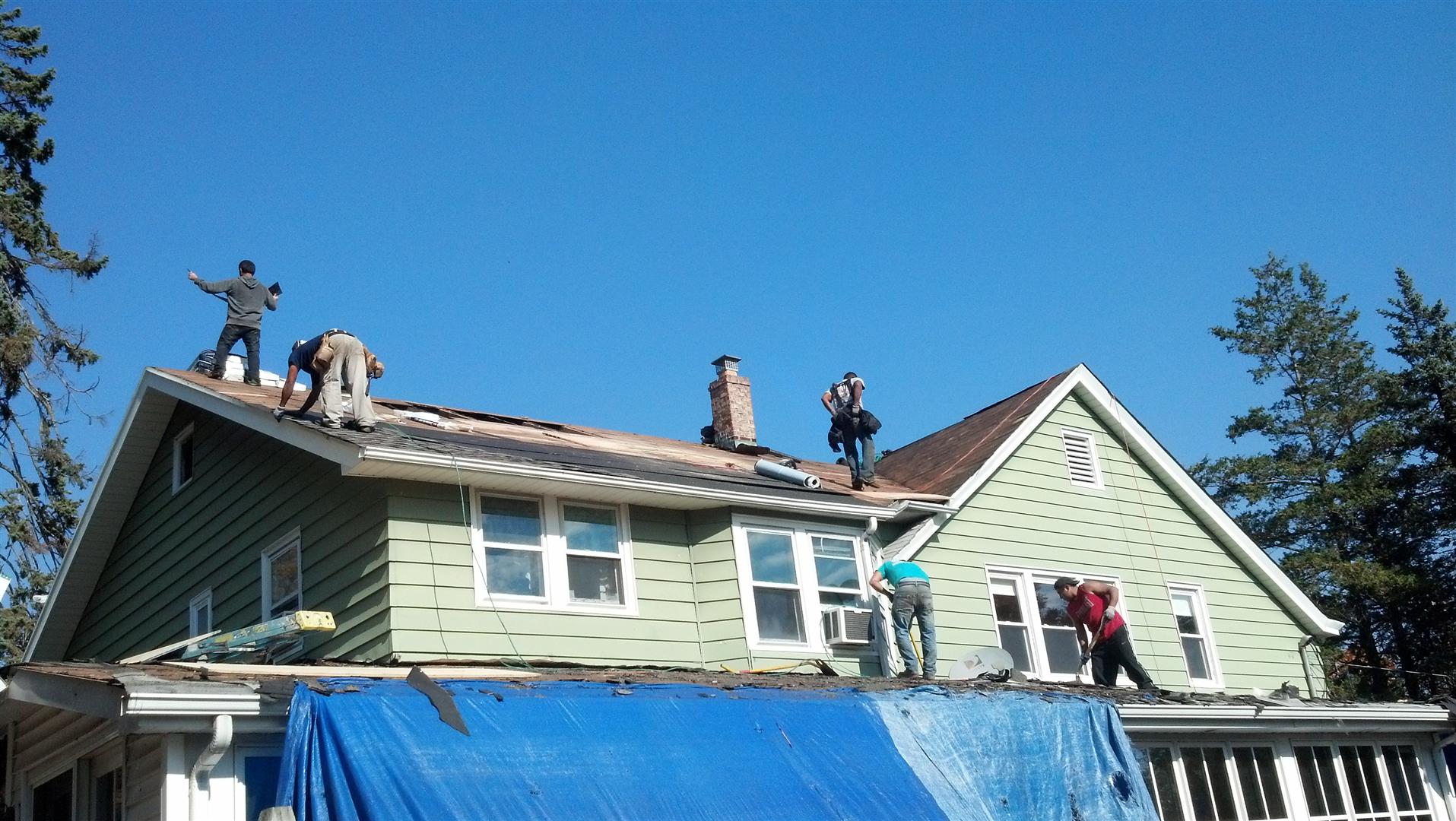 Demolition of the roofing shingles in Hawthorne, New Jersey.