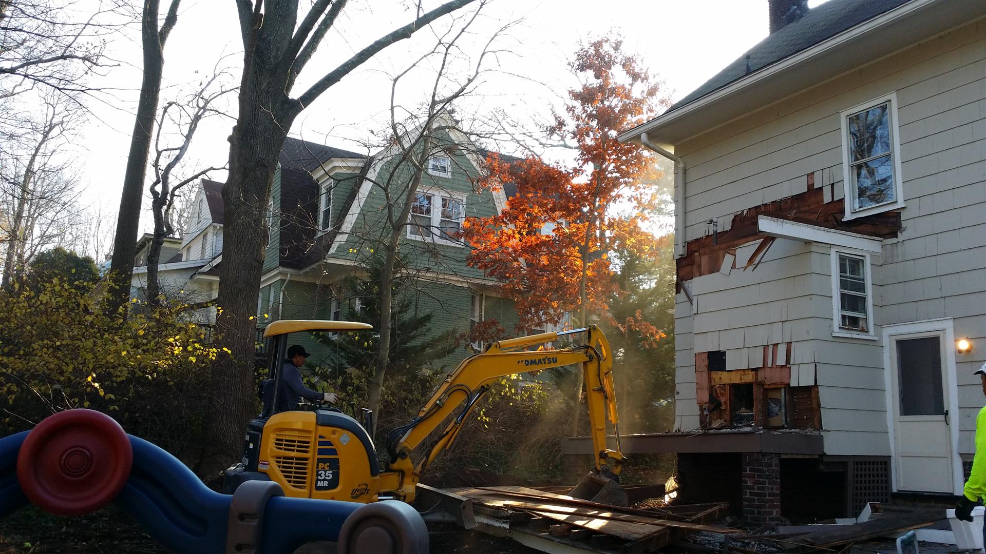 Demolishing the old kitchen walls in preparation for the expansion and renovation.