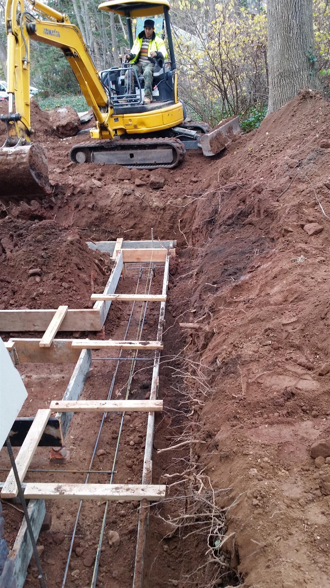 The forms for the footings were installed, along with the rebar.