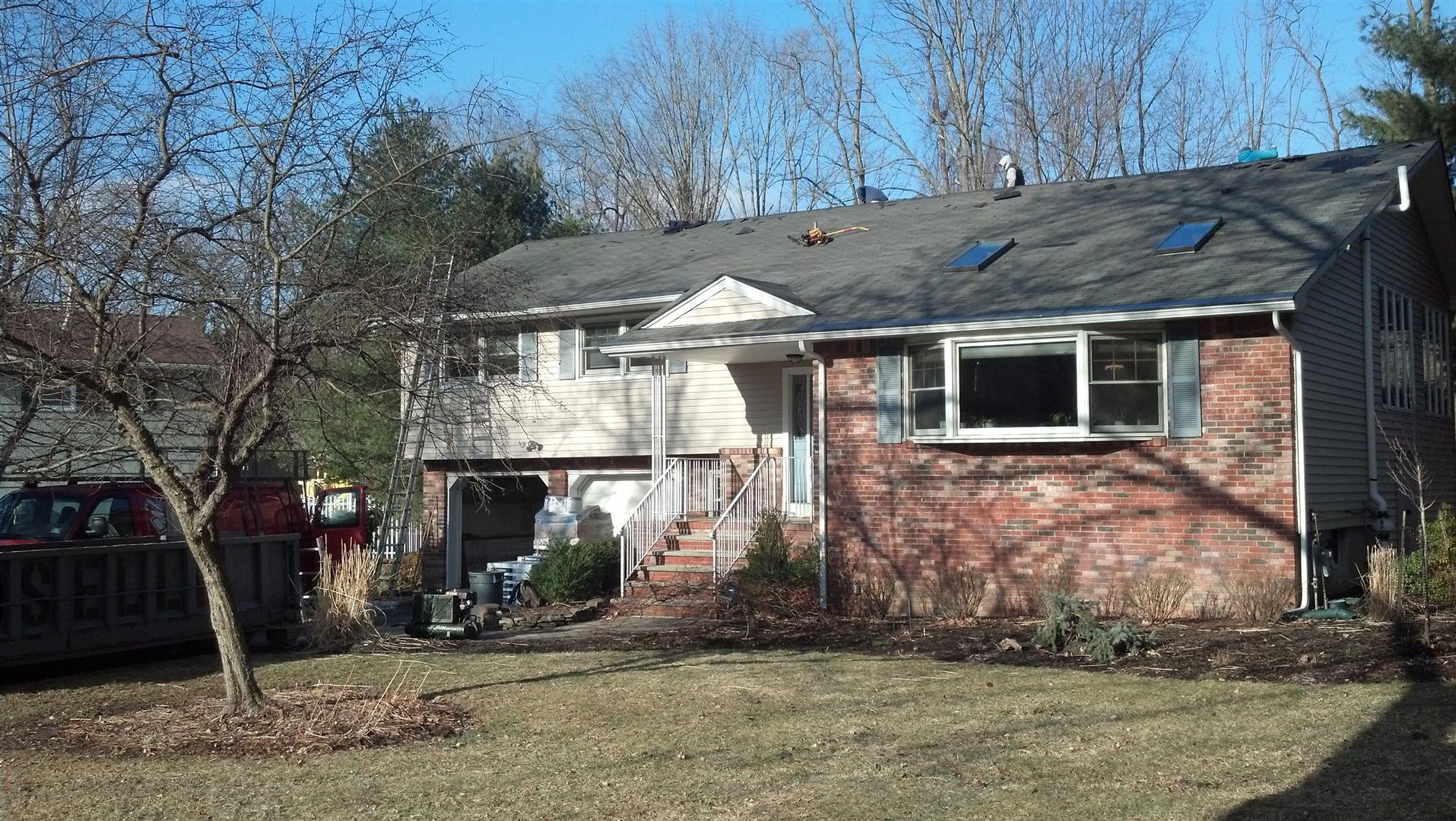 M&M Construction Specialist replaced this roof in Morris Plains, New Jersey. The existing roofing shingles were removed and replaced with new architectural GAF Timberline roofing shingles. Additionally, a number of sheets of plywood were found to be rotted and replaced. The job included the installation of new GAF WeatherWatch ice and water shield, felt underlayment, TimberTex hip and ridge caps, new pipe collars, Cobra ridge vent, and TimberTex hip and ridge caps.