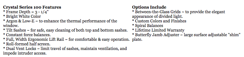Crystal® ThermoBlok™ fully welded vinyl replacement windows are manufactured with exclusive chambered ThermoBlok™ designer extrusions. These ThermoBlok™ extrusions feature innovative insulating air barrier technology that reduce thermal transference from the exterior of window frame to interiors, and “intercept” warm edge glass spacer technology for added thermal protection. These features reduce heating and cooling loads on HVAC systems, providing long term energy efficiency and utility savings to property owners. This series is offered as double hung, bay, bow, slider, casement, and coordinating architectural circle top shapes for enhancing curb appeal of home renovation projects.