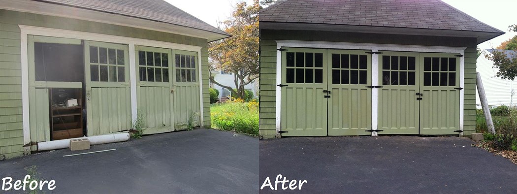 The doors on this historic carriage house in Metuchen, NJ suffered damage during a storm. M&M Construction Specialist was contracted to completely rebuild the missing door using original techniques and construction methods. Reproduction glass and hardware was installed. The remaining three doors, which had been damaged due to age and weathering, were refurbished to their original condition. Repairs were made where needed, joints sealed, and all doors were repainted to match the existing colors.