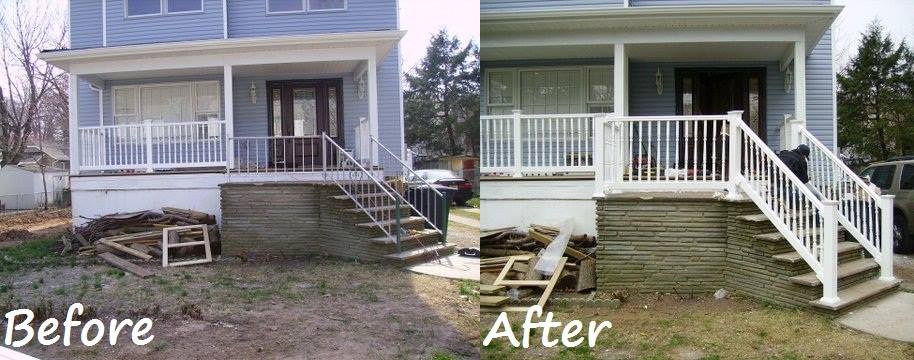 For this client in Madison, NJ, we installed a new PVC railing, new front door and new Alside siding. Old or improperly installed railings can be a safety hazard. If your railings are loose or falling apart, call M&M Construction Specialist. The new PVC railing that we installed for this client will be sturdy and safe.