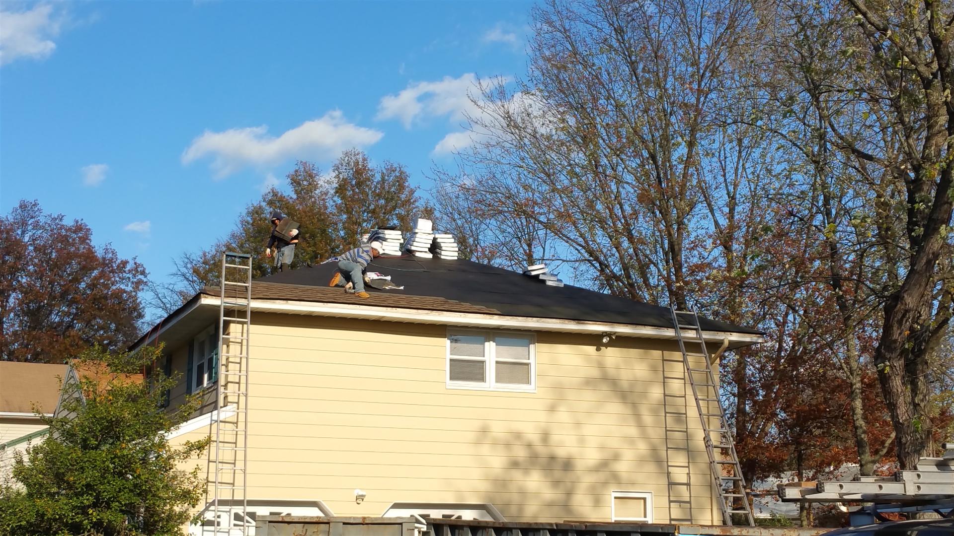 Installing the new GAF Timberline shingles after the ice and water shield and felt was installed.